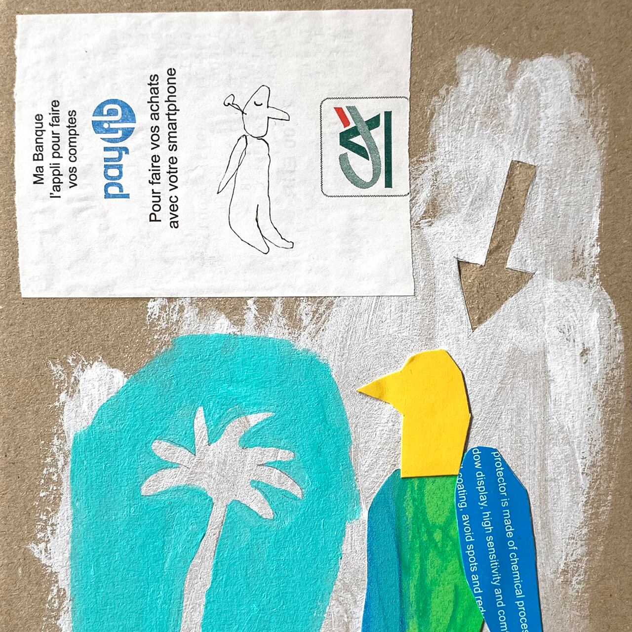 コラージュとアクリル絵具のドローイングにより制作した